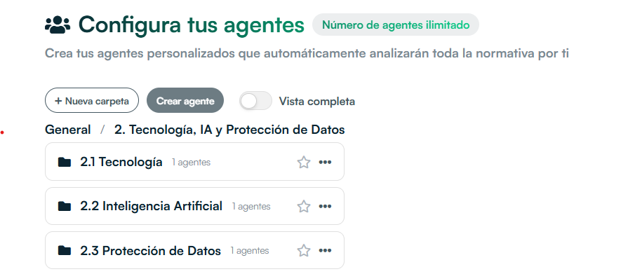New product features included to enable regulatory tracking at scale for enterprises, knowledge teams and regulatory teams. Collaborative functionality with simple interface to handle different regulatory radars and organize your agents by topics, areas or clients.